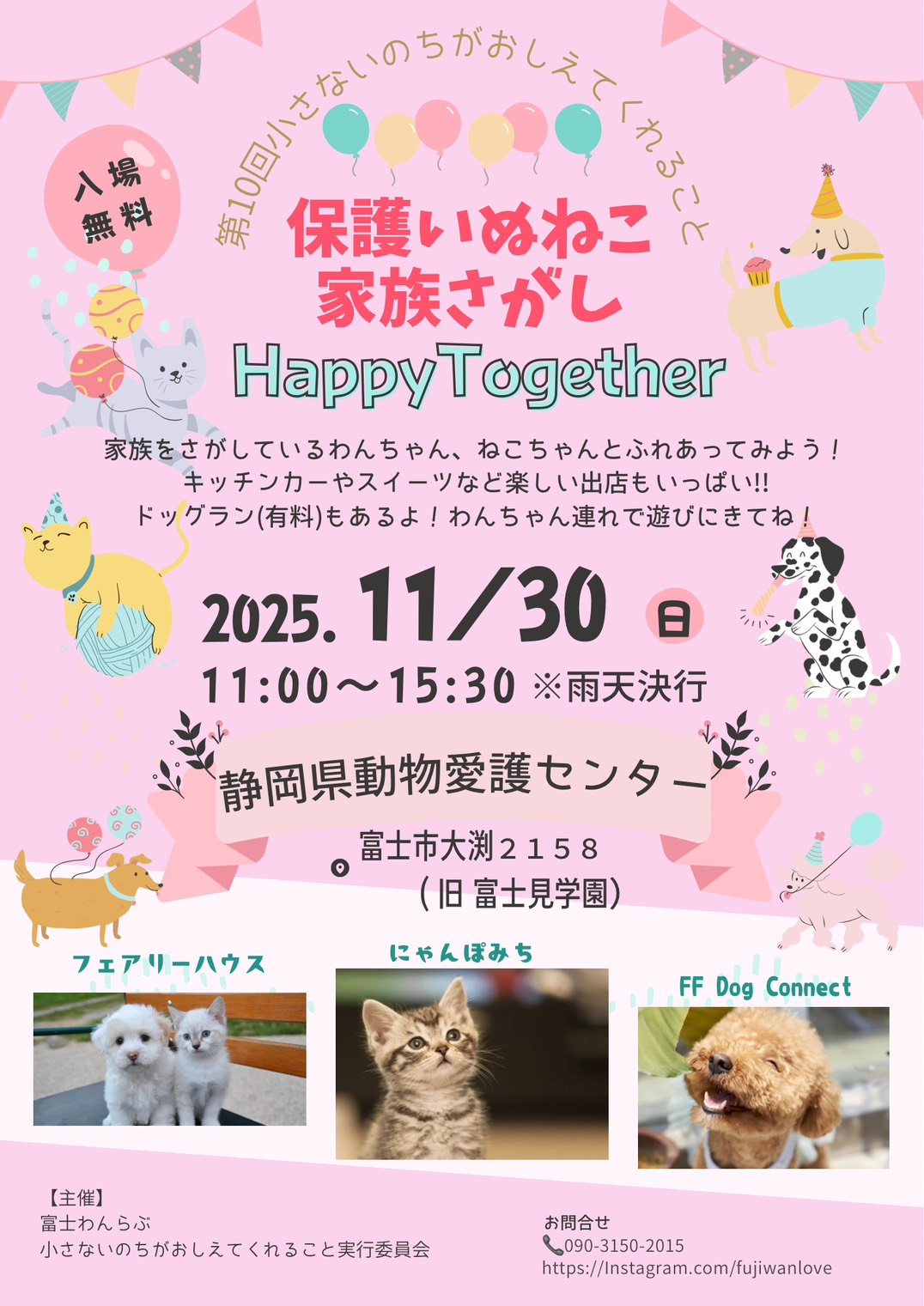場所は違いますが今月はHappy Togetherのイベントが2つあります。こちらも室内なので雨天決行です。