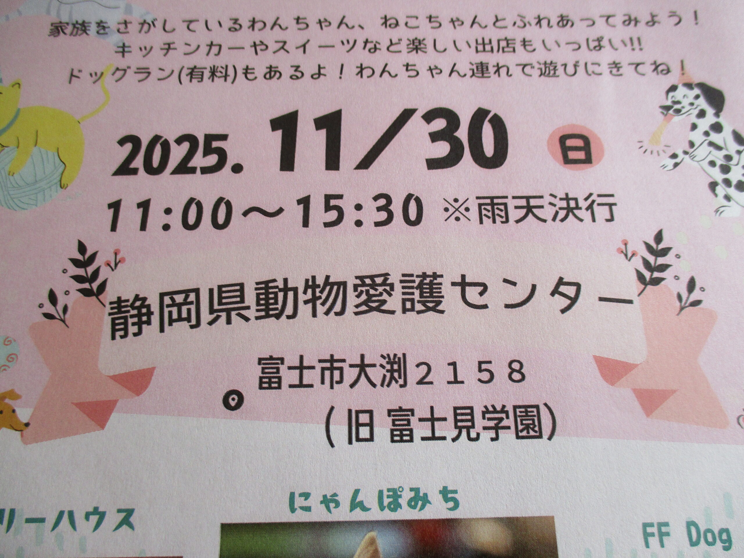 にゃんぽみちのブースは室内です。またパネルも展示しますので見に来てください。