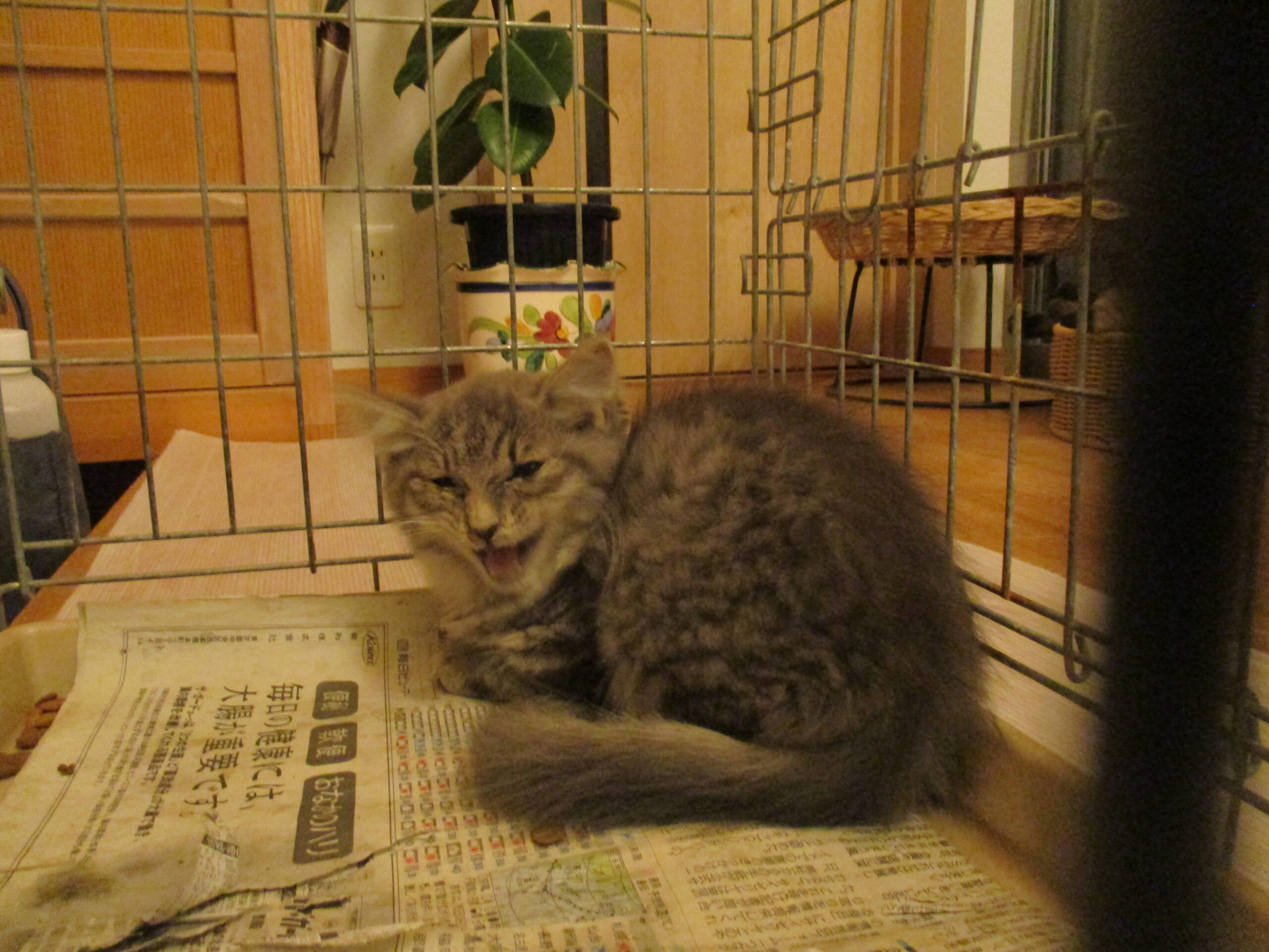 仔猫8匹の最後の子、警戒心が強くてなかなか捕まえられませんでした。毎日、通ってかよって対策を立てて、やっとです。やっぱり風邪をひいています。目の炎症もあります。点眼、投薬しなきゃならないのに、この子は噛みました😰何日間か、気をつけてやりました。睨まれて私はすっかり嫌われました😢