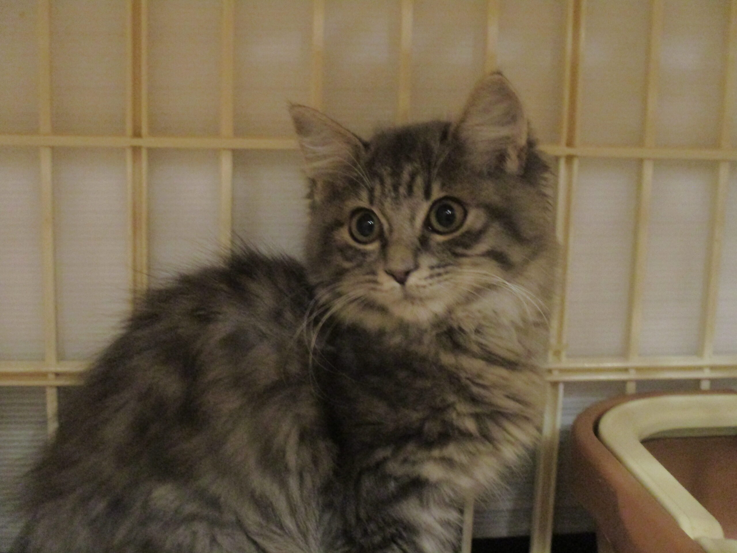 目薬をしたくても、すごく嫌がり無理やりすると怖がらせてしまうので、できない事が多いです。2人とも室内の生活には慣れ、楽しく走ったりおもちゃで遊んだりタワーに登ったりしています。寝ている時なら触れますが捕まえようとすると逃げます。ご飯はちょーだい!と来ます。ググ♀は控えめな子で、ムク♀は活発です。去年の春子と一昨年の春子で1年違いますが同じ場所で産まれ育っていたので仲良しです。臆病なため、2匹で迎えてくれる人を希望します。