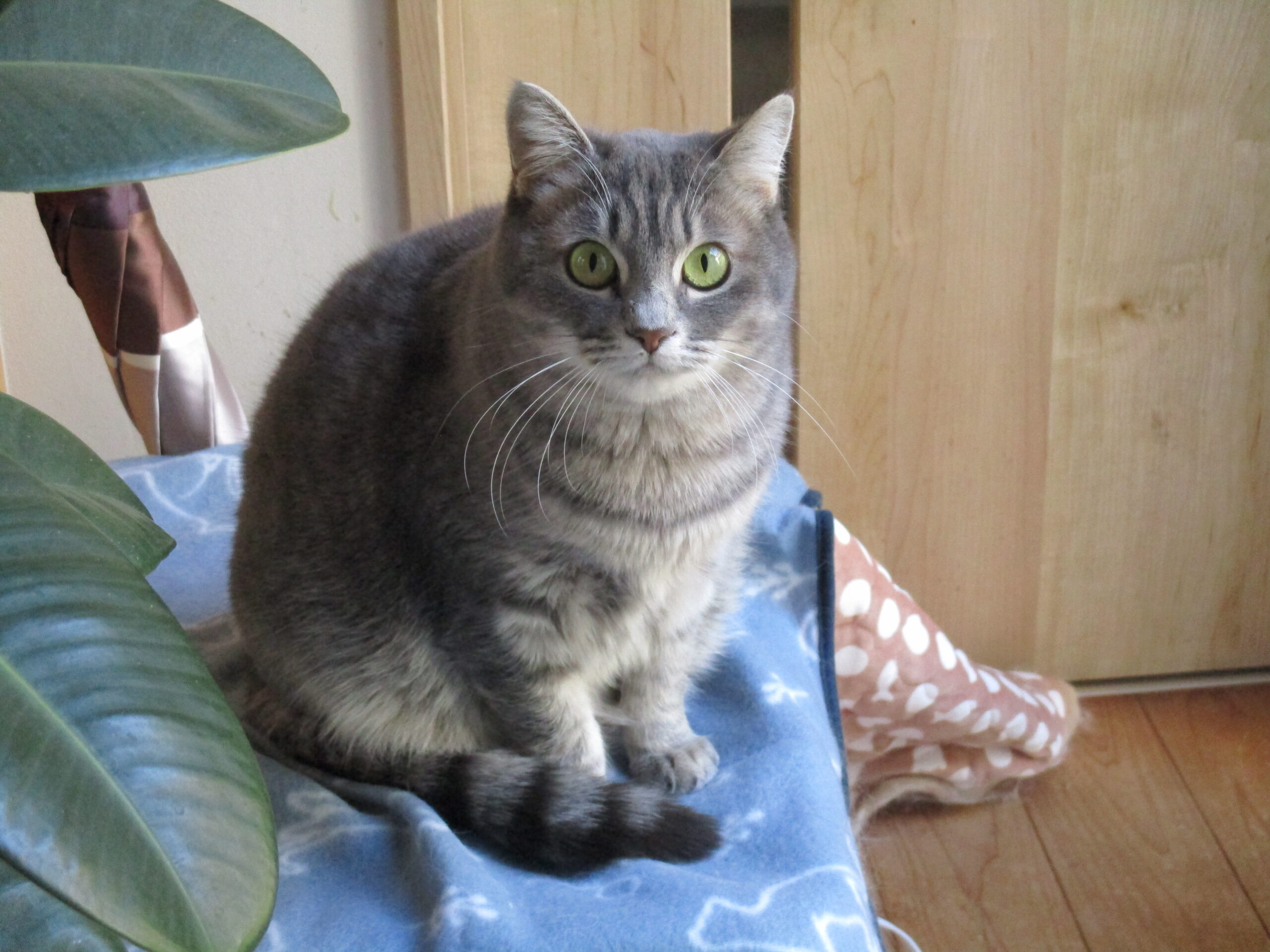 慢性化している風邪の治療は注射に通いながらしました。なかなか風邪症状がスッキリしないので点眼、投薬をわりと続けました。体力がついてからは、だいぶ良くなりました。外にいる時はスリスリと慣れていたほく♀ちゃんでしたが、産まれて半年を外で過ごしたので思ったより、おうちの中の生活に慣れるまで鳴いたりしました。えむ♀ちゃんは、おうちの中の生活に馴染むまで少し戸惑いました。