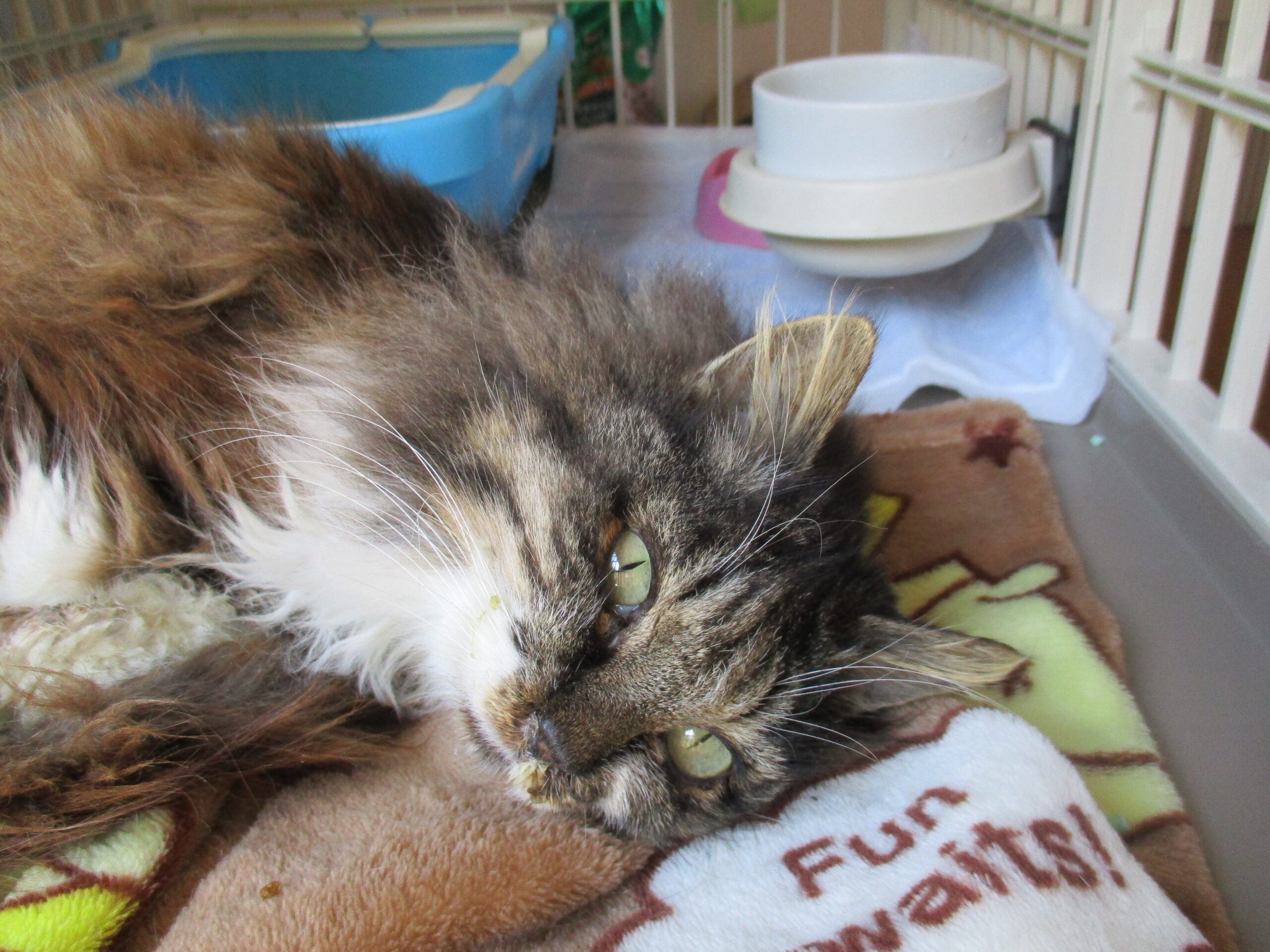 それでも、せっせと毎日お世話しているとだんだん威嚇しなくなりました。ご飯は良く食べましたが保護時1.5㎏ほど。その後、元気がなくなり病院へ行ってみると1.3㎏になっていて心配しました。