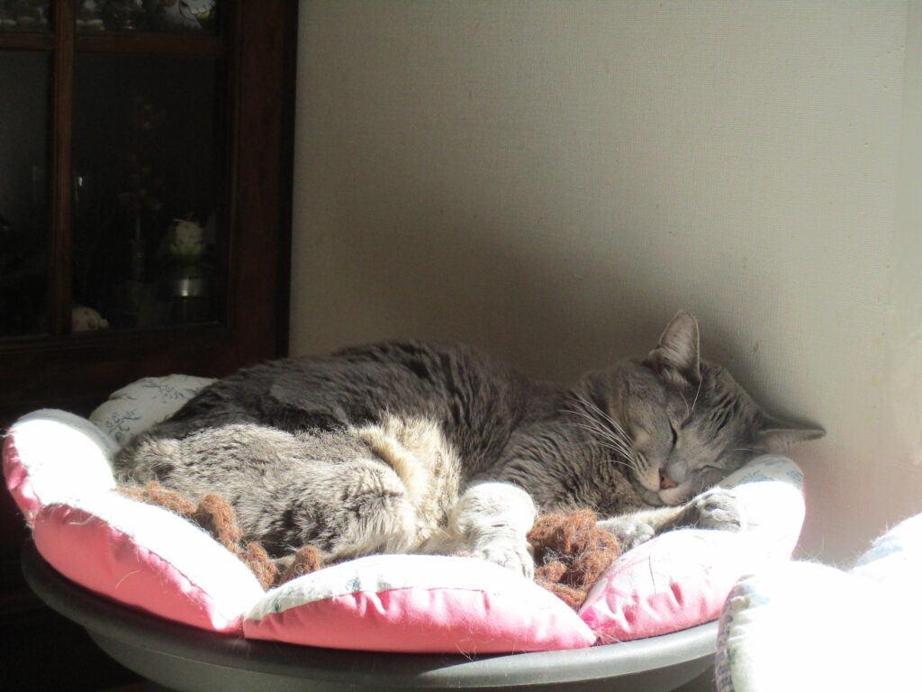 むぎ♀はのん♀やググ♀ムク♀と仲良く日向で寝んねしてます。またのど?を気にする様子があり、あまりご飯を食べないので昨日、モフちゃんと一緒に通院。点滴注射をしてもらってきました。ら、昨夜からまた食べてくれます。高齢なので体調に気をつけて、体調下降気味になったらすぐ通院していきます。