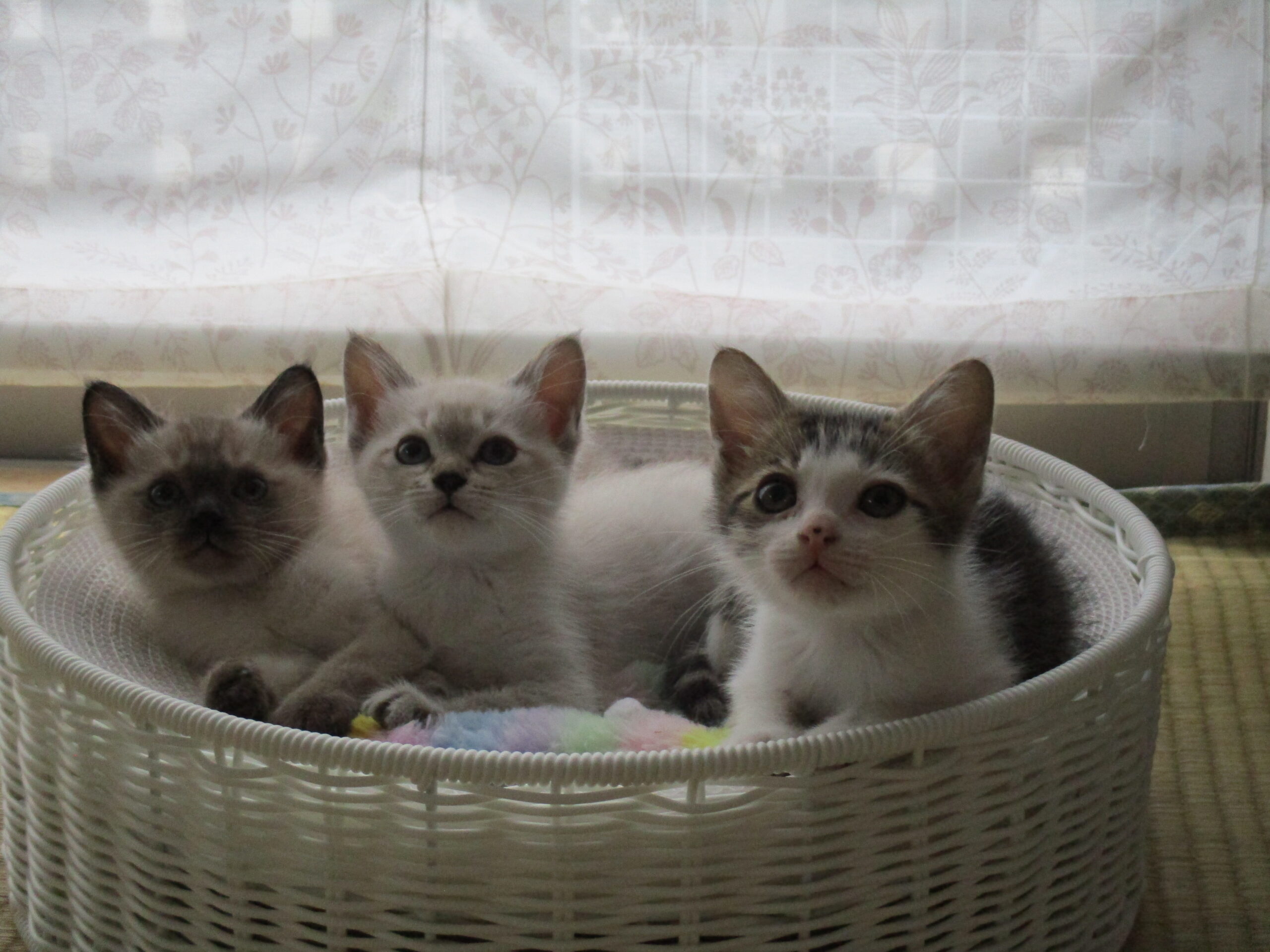 イベントが終わり1腹目のななつごが決まり譲渡もほゞ済んだ21日に引き取りました。この子たちです↓兄弟1匹は個人ボランティアさんの歴代の里親さん宅へ巣立ったそうです。