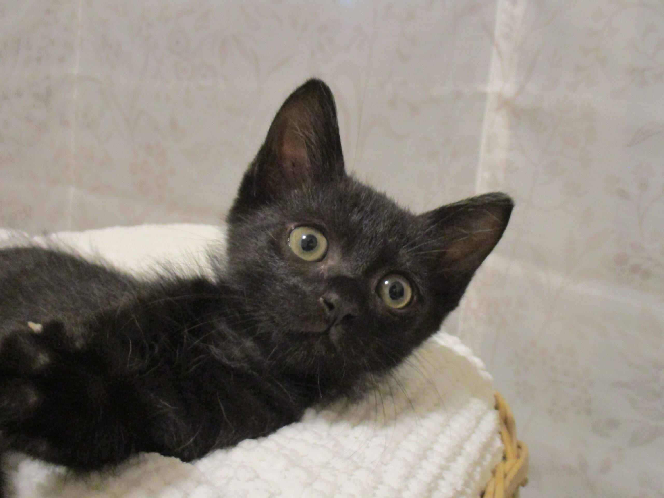 なななつご、むつご①と同じうちで産まれました。生後2週間~人工乳で育ててきました。リトル♂ミルク♂リンダ♂は目の炎症がなかなか治らず身体が小さかったですが、やっと元気に成長してきました。今では、どの子も食欲元気あり元気に遊んでいます。先住猫さんのいるおうちか2匹で迎えてくれる人を希望します。黒の女の子、人馴れ元気💮